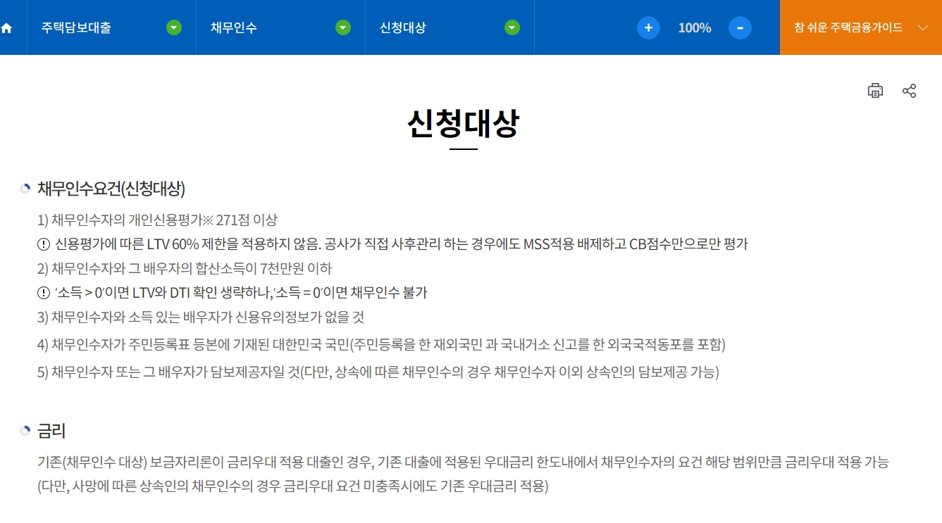 한국주택금융공사에서 제공한 보금자리론 채무인수 신청방법이 올려져 있었다.