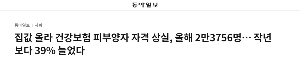 2022년 하반기에 건강보험료 제도 개편이 예정되어 되어있다. 작년에 주택가격 상승으로 인하여 2만3756명이 피부양자 자격에서 탈락했는데 건강보험료 부과체계 개편이 후 기준이 더 낮아져 10배 가까이 늘어난다고 한다.